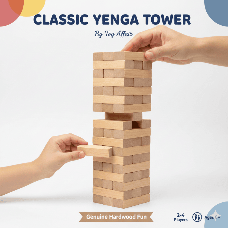 Classic Gameplay for All Ages: The Yenga Tower game is easy to learn, making it ideal for both kids and adults. Players take turns removing one block at a time from the tower and stacking it on top, all while carefully maintaining balance. The challenge grows as the tower becomes taller and more unstable!