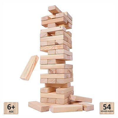 54 High-Quality Wooden Pieces: The game includes 54 smooth, durable wooden blocks that are easy to handle and stack. These well-crafted pieces ensure a satisfying and sturdy gameplay experience every time.