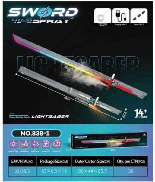 SWORD WITH LIGHT N SPRAY 838-1