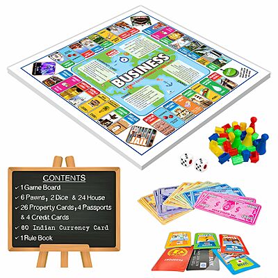 The Business Board Game serves as for teaching basic financial literacy and strategic thinking to children and adults alike. It helps players understand key economic concepts such as buying, selling, property management, and decision-making in a fun, interactive way. This game encourages critical thinking, enhances negotiation skills, and promotes family bonding by offering an engaging platform for friendly competition. It’s perfect for developing problem-solving abilities and fostering teamwork, making it an ideal addition to family game nights or educational settings.
